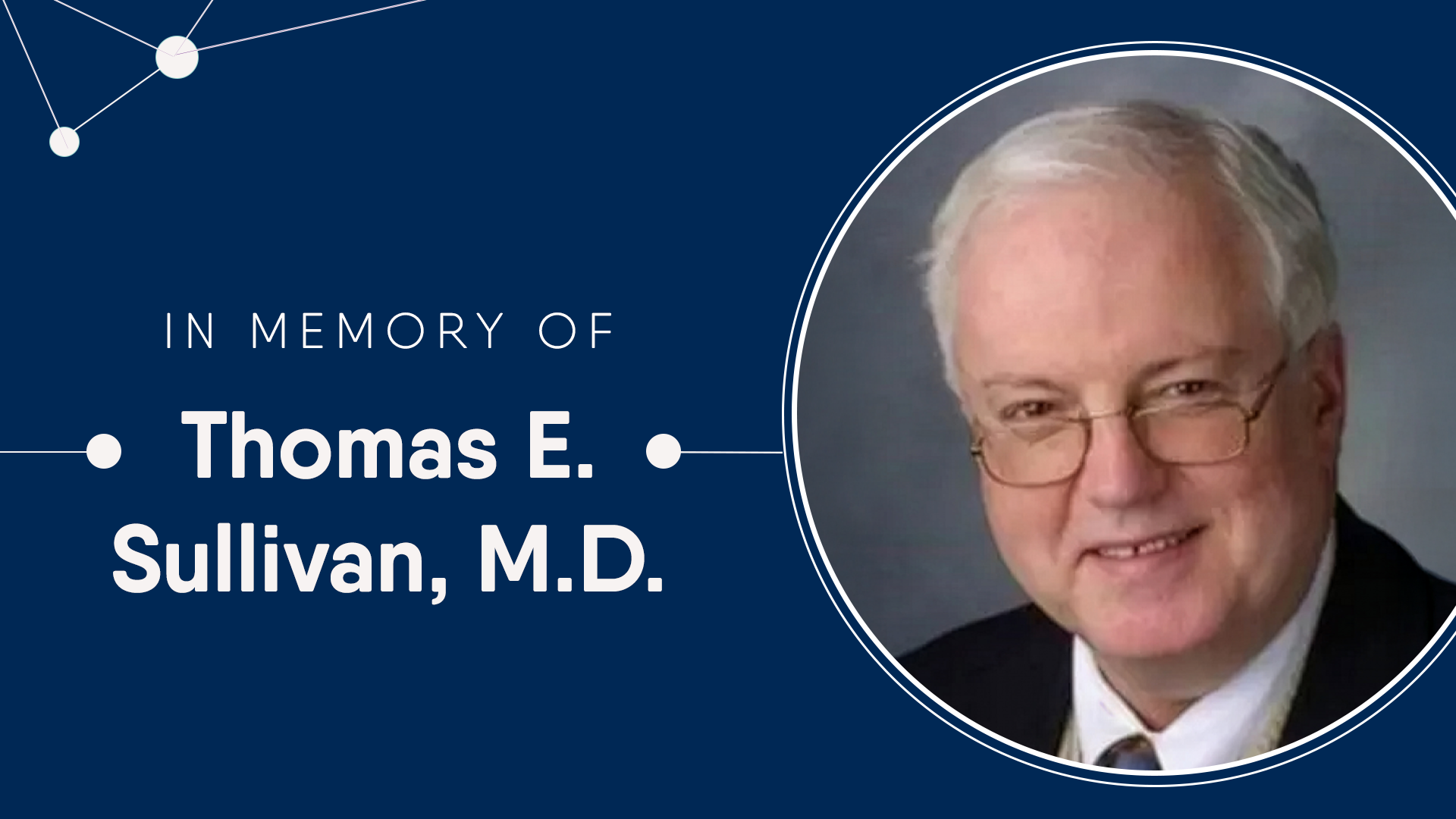 It is with profound sadness that we mark the passing of Thomas E. Sullivan, M.D., on Monday, January 19.